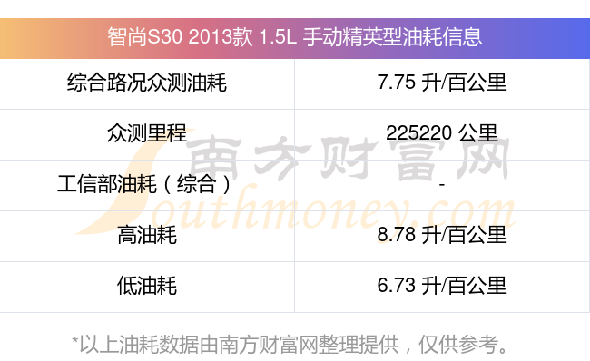 智尚S30 2013款 1.5L 手動(dòng)精英型搭載了一臺(tái)1.5L102馬力L4自然吸氣發(fā)動(dòng)機(jī),采用5擋手動(dòng)擋變速箱,常規(guī)整備質(zhì)量1206kg,廠家參考價(jià)6.78萬元。