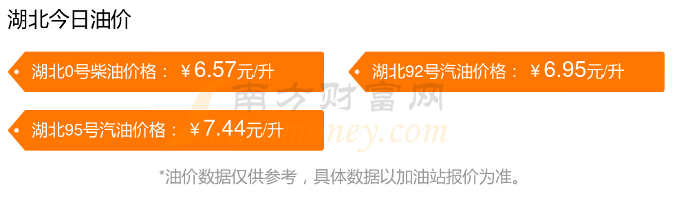 汽油價格調(diào)整最新消息:下一輪油價調(diào)整時間11月24日24時。11月13日湖北汽油、柴油每升的最新價格:92號汽油6.95元,上漲了0.1元;95號汽油7.44元,上漲了0.11元;0號柴油為6.57元,上漲了0.1元,本次油價調(diào)整時間是11月11日。