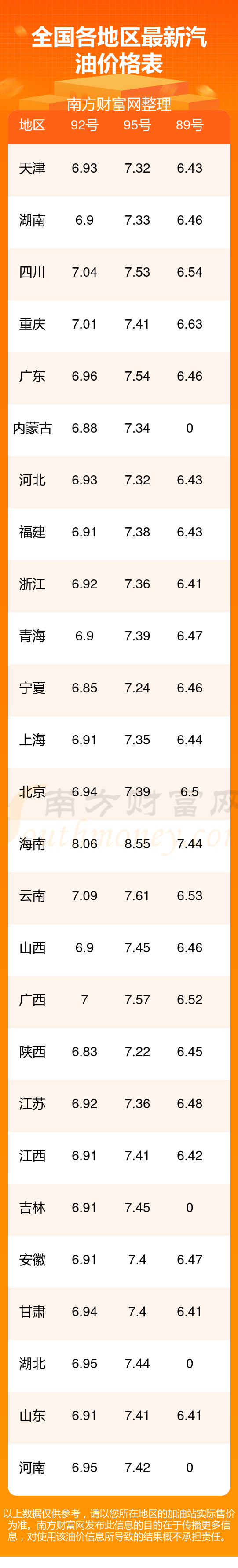 油價調(diào)整最新消息:11月13日西寧城北區(qū)汽油、柴油每升的價格詳情如下:92號汽油6.9元,上調(diào)了0.1元;95號汽油7.39元,上調(diào)了0.1元;89號汽油6.47元,上調(diào)了0.09元;0號柴油6.51元,上調(diào)了0.1元,本次油價的調(diào)整時間為11月11日。下一輪油價調(diào)整時間11月24日24時。
