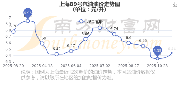11月13日,上海89號(hào)汽油的價(jià)格是6.44元每升,本次的調(diào)整時(shí)間為11月11日,對(duì)比上次的調(diào)整上調(diào)了0.09元,上調(diào)1.417%,11月24日24時(shí)為下一輪油價(jià)調(diào)整時(shí)間,還有11.24天。