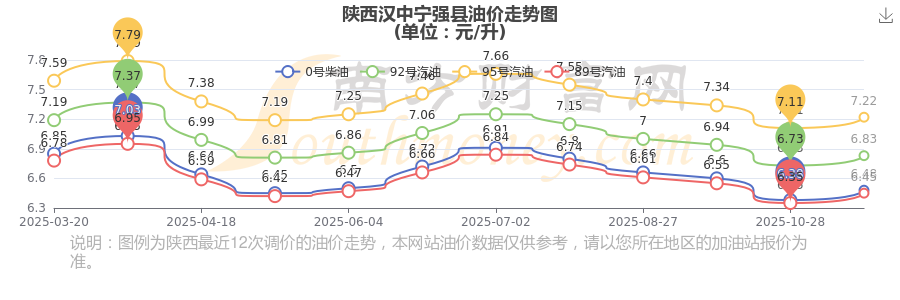 陜西漢中寧強縣11月13日95號汽油歷史油價調(diào)整走勢圖