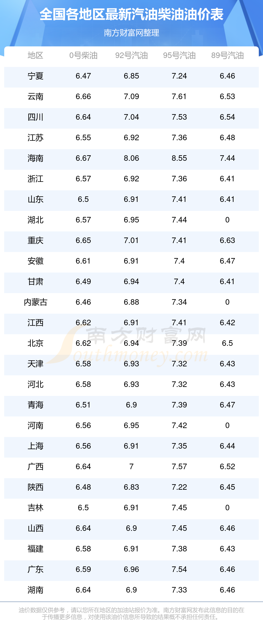 2025年11月13日全國(guó)各地汽油價(jià)格表一覽