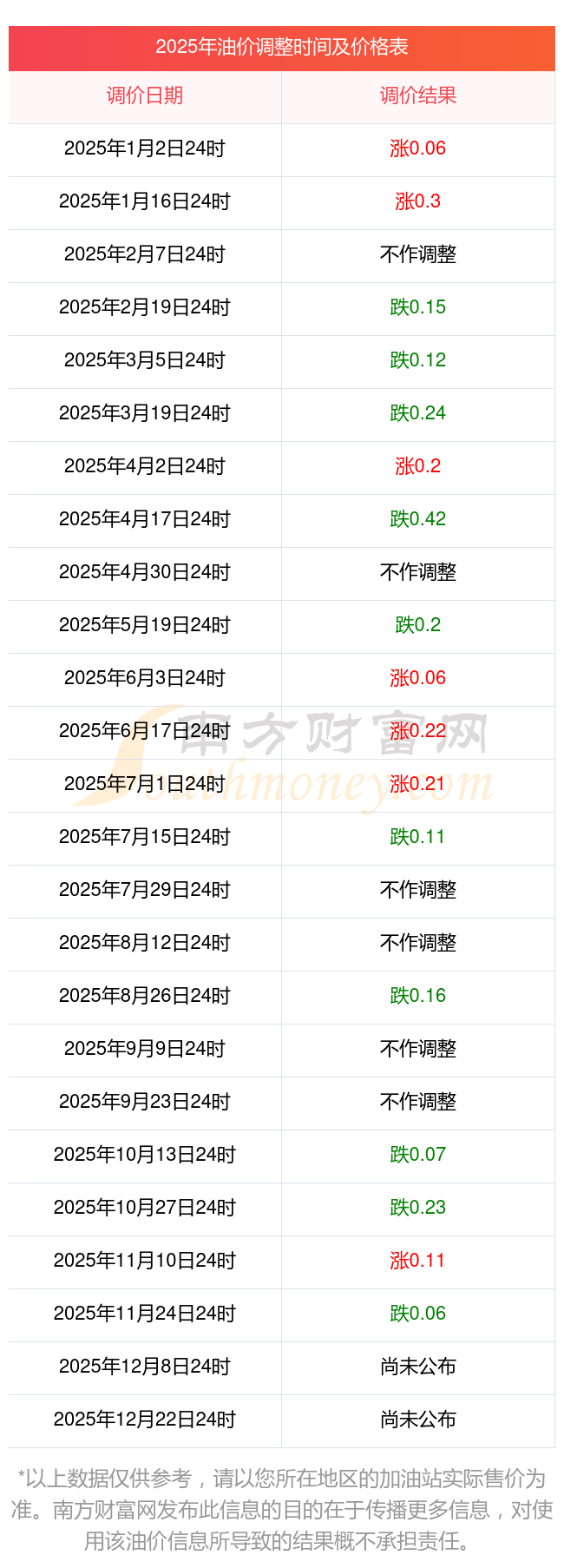 2025年11月29日全國(guó)油價(jià)調(diào)整時(shí)間及價(jià)格一覽表